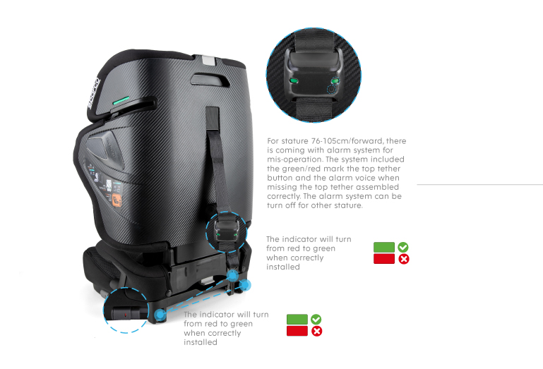 · Equipped with ISOfix + Top Tether for a secure connection.